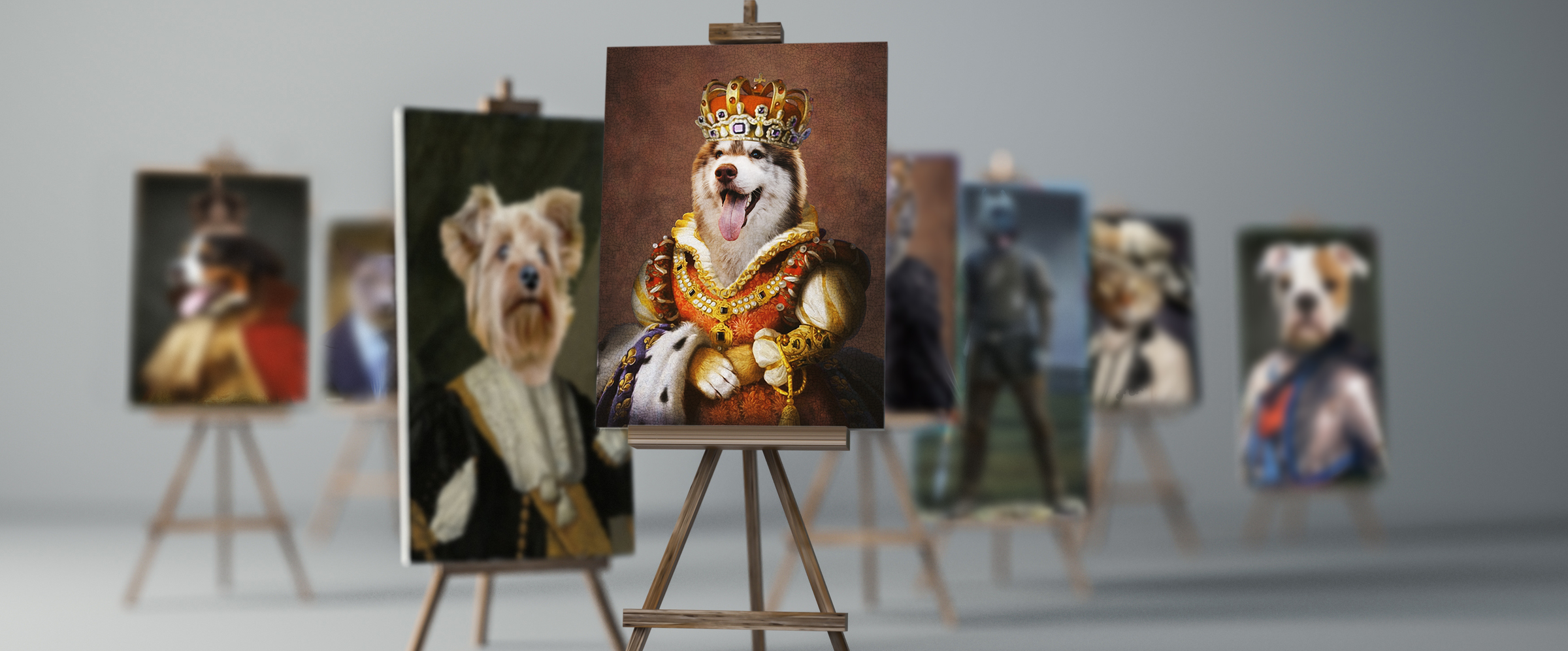 Een speelse twist die jouw huisdier in de spotlight zet als nooit tevoren. Transformeer hun persoonlijkheid in een kunstwerk dat je elke dag vreugde brengt! ❤︎