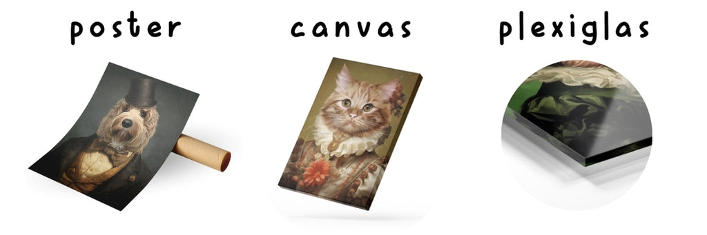 Esta colección ofrece una amplia gama de posibilidades para inmortalizar el amor por tu mascota. Elige entre acuarela, realista, caricatura, estilos dibujados, impasto y retratos florales para una obra de arte personal que habla al corazón.